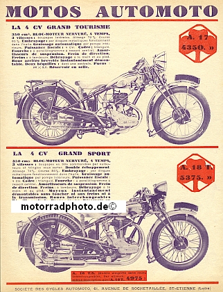 Automoto Motorrad Prospektblatt 1933